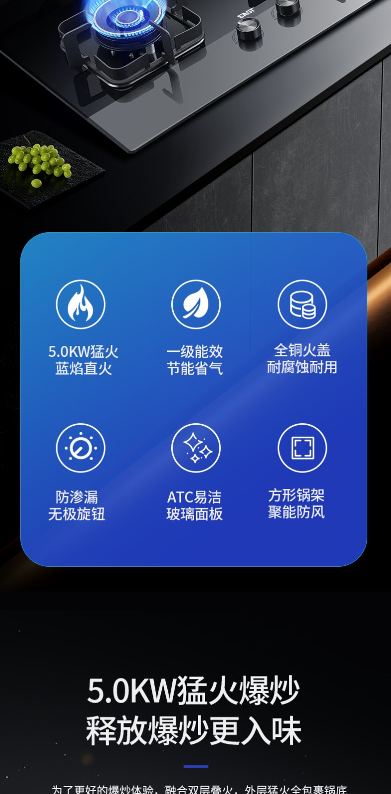 純上進風系統,5.0kW猛火爆炒