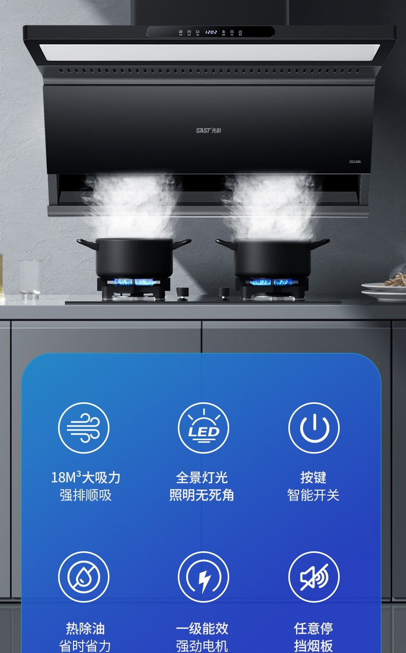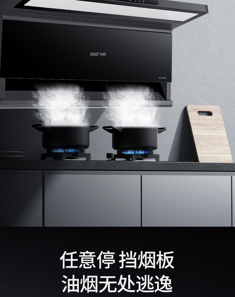 “任意停“擋煙板,隨心控油煙